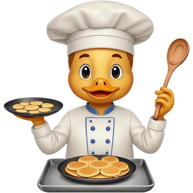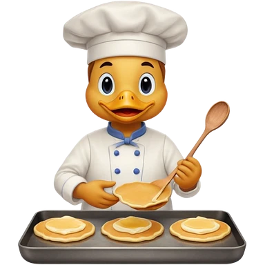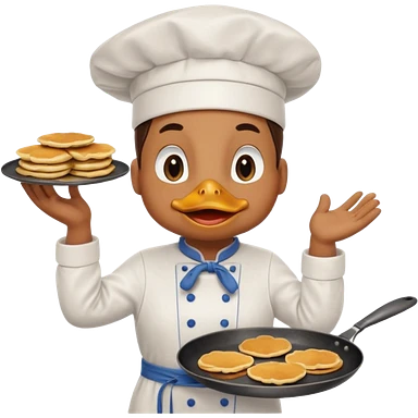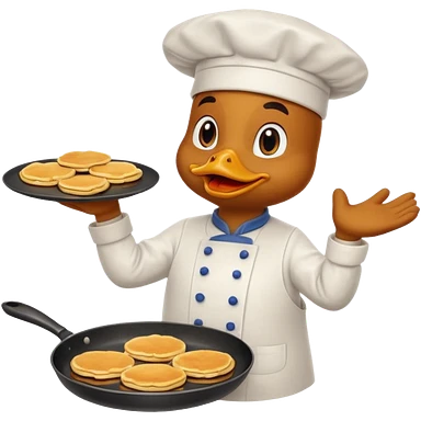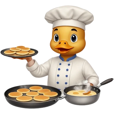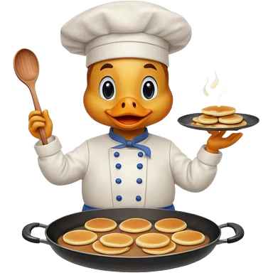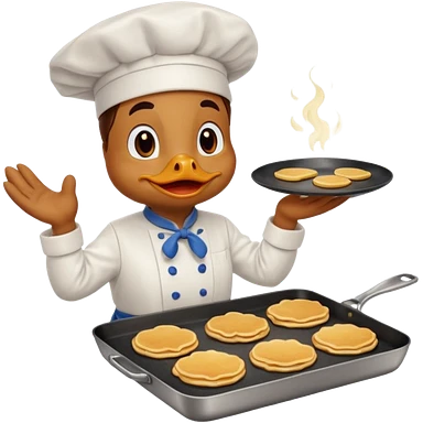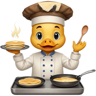 A chef duck wearing a tiny apron, making pancakes on a pan emoji | AI Emoji Generator