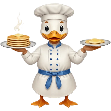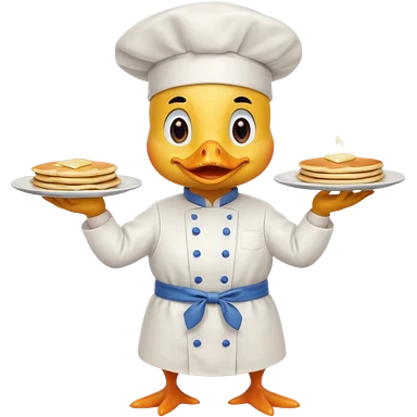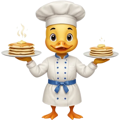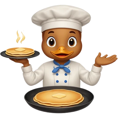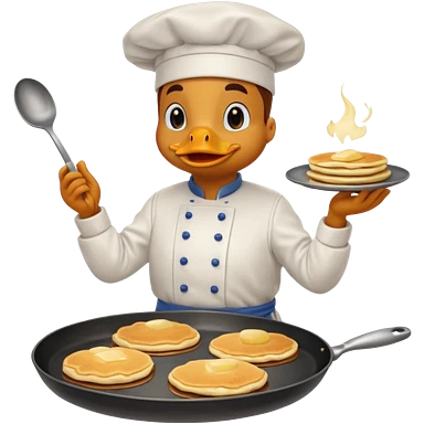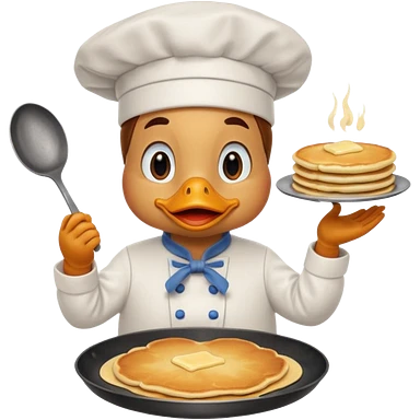 A chef duck wearing a tiny apron, flipping pancakes confidently. emoji