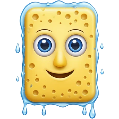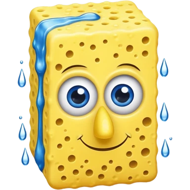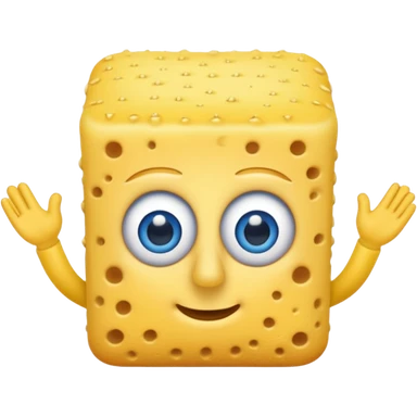 A yellow Kitchen sponge with blue eyes and a yellow skinny nose emoji