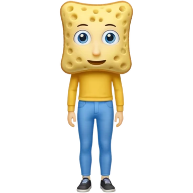 Make a kitchen sponge have brown pants and blue eyes a yellow skinny nose emoji