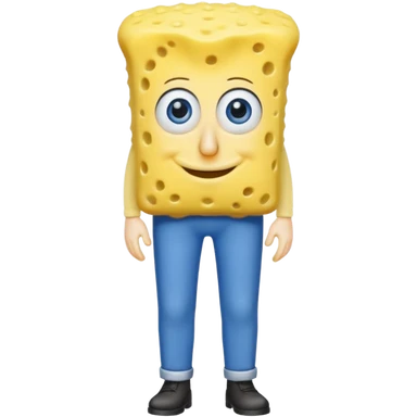 Make a kitchen yellow sponge have pants and blue eyes a yellow skinny nose emoji
