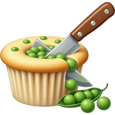 a cupcake that cuts its own self with a knife and there are peas spilling out of it emoji