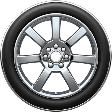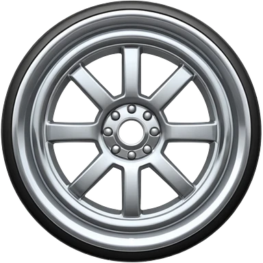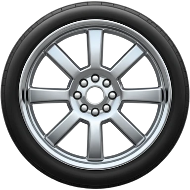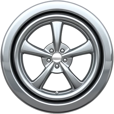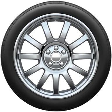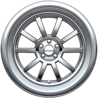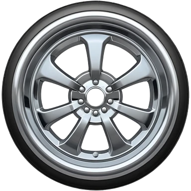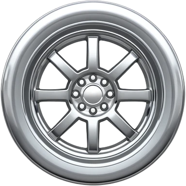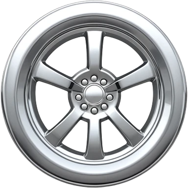 A chrome car wheel emoji, polished silver metal rim, smooth circular shape, minimal futuristic design, soft reflections, iOS emoji style, centered on white background, ultra clean look emoji | AI Emoji Generator