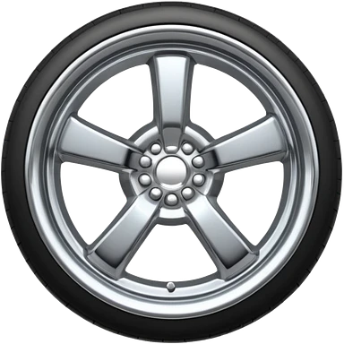 A chrome car wheel emoji, polished silver metal rim, smooth circular shape, minimal futuristic design, soft reflections, iOS emoji style, centered on white background, ultra clean look emoji