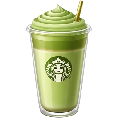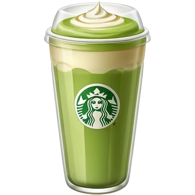 A clear glass with matcha latte. The glass should be a takeaway one, similar to Starbucks', but clear and without the logo. I'd like the latte to blend with the matcha. emoji | AI Emoji Generator
