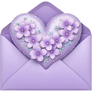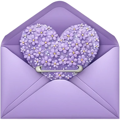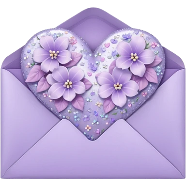 a closed pastel lavender flowers heart shiny sparkly glittery aesthetic romantic vintage envelope emoji