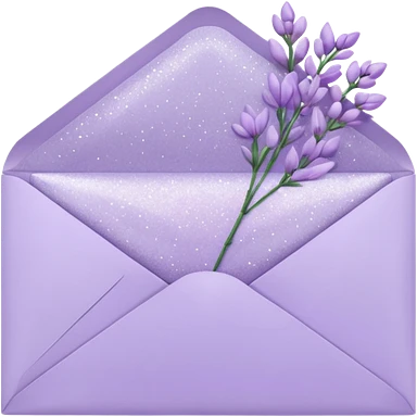 a closed pastel lavender lilac flowers heart shiny sparkly glittery aesthetic romantic vintage envelope emoji