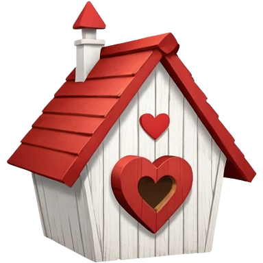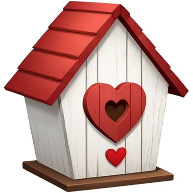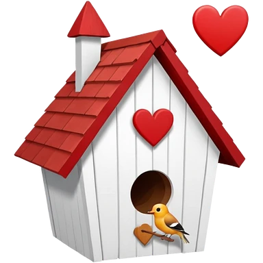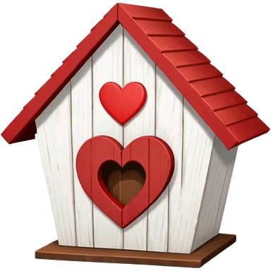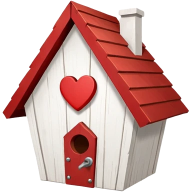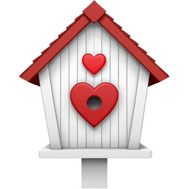 a birdhouse with a normal circular hole and a red roof with the rest white and a heart at the top but below the roof emoji