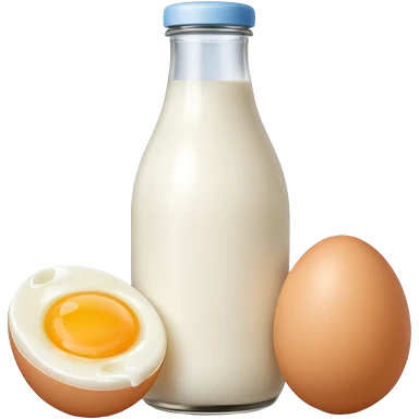 A cluster of dairy items: a milk bottle with an eggs and butter emoji