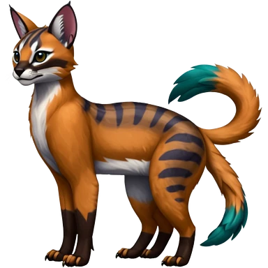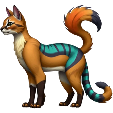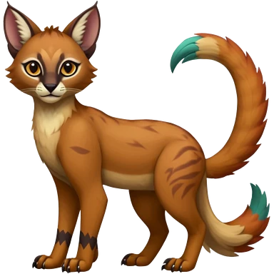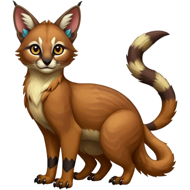 Colorful dark tropical exotic cute cool beautiful shiny beautiful fantasy-caracal-civet-genet-serval-Gryphon-Cacomistle-Trico-Red-Panda-oncilla-animal-Fakémon-hybrid-fursona (full body) emoji