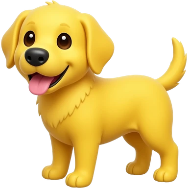A completely yellow dog, standing up with legs and arms open like a little person, looking at us with a very happy expression. Its body is completely yellow. emoji | AI Emoji Generator