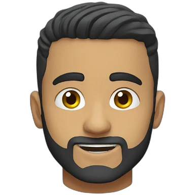 Dark olive skin man, center rised eyebrows, very light smile so that lips are very close to liner and horizontal, some how liner and small eyes emoji