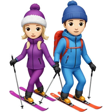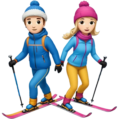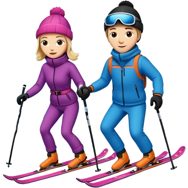 a couple skiing they both have ski helmets and goggles on , man with a beard in a tux and woman in a wedding dress on their skiis going down a slope. emoji | AI Emoji Generator