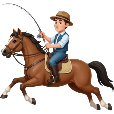 a guy flying off a horse with a fishing rod in his hand emoji