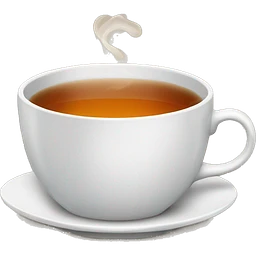 A cup of coffee, steaming, the smoke is heart-shaped, the cup is mustard yellow, the cup has a happy face printed on it, the cup sits on an olive green saucer, and there are cookies around the cup. emoji