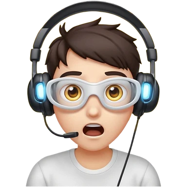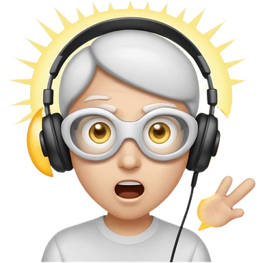 Cartoon character, surprised and blinded by flashbang, headset on, exaggerated eyes, bright white glowing effect, funny expression, Twitch emoji style, transparent background emoji