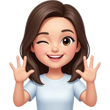 a cute anime-style girl, smiling and winking, both hands held forward, each hand showing three fingers, playful and cheerful pose emoji