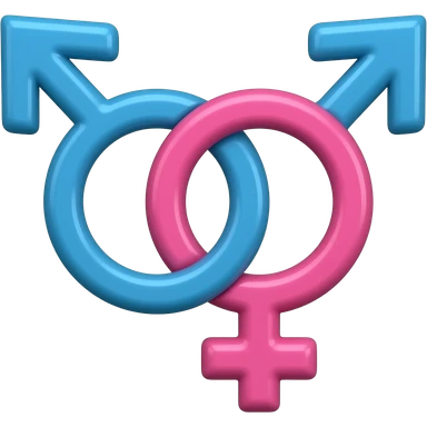 A cute bisexual emoji for discord with two male symbols looped into the top loop of one female symbol emoji | AI Emoji Generator