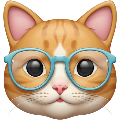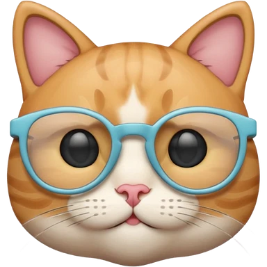 A cute cat emoji wearing geek-chic glasses, minimal design, simple shapes, soft pastel colors, clean vector style, centered composition, emoji style, smooth lines, subtle shadow, high resolution, transparent background, PNG format, no background emoji