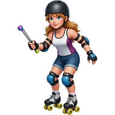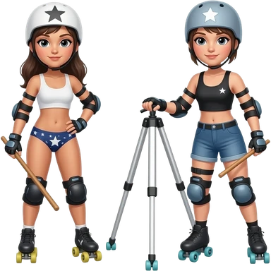 I want a person or two who are playing roller derby. Maybe even a tripod and a jammer or just a jammer. But without the stick and with a panty with a star emoji