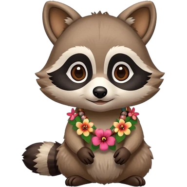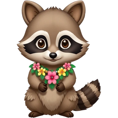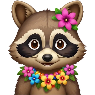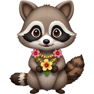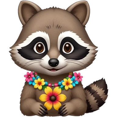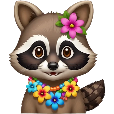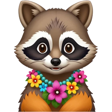A playful raccoon wearing a hawaiian flower necklace, looking festive. emoji