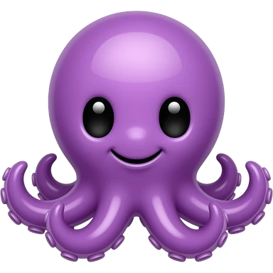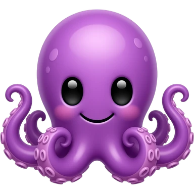 This image is a cartoon illustration of a cute, purple octopus with large black eyes and a smiling expression اhigh color contrast emoji