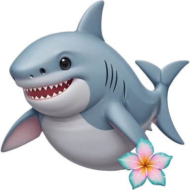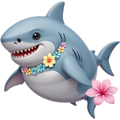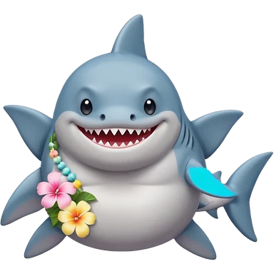 A cute chubby shark with hawaii pastel flower necklace and hawaiian flower crown, posing proudly. emoji | AI Emoji Generator