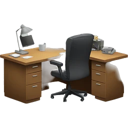 A cute desk with a laptop and notebook on it with an office chair emoji | AI Emoji Generator