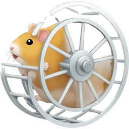 A cute, energetic hamster running inside a wheel, showing determination and focus. The hamster should look fluffy and cheerful, with vibrant colors and a playful vibe. emoji | AI Emoji Generator