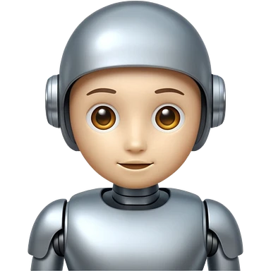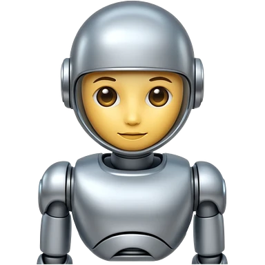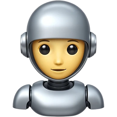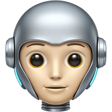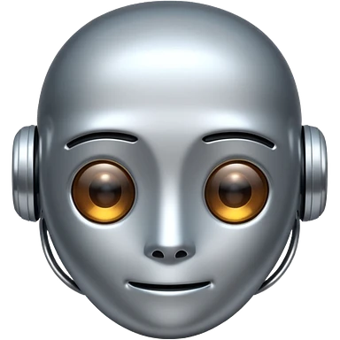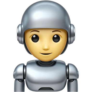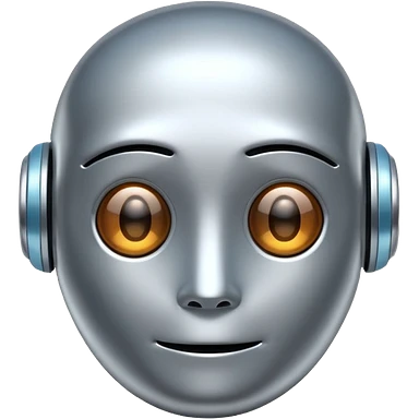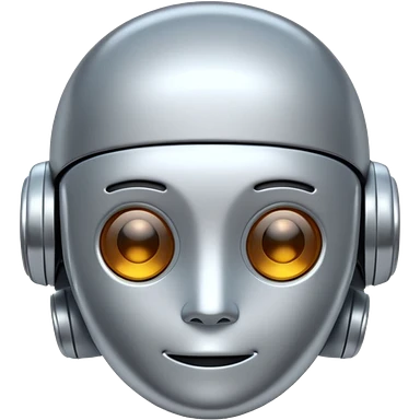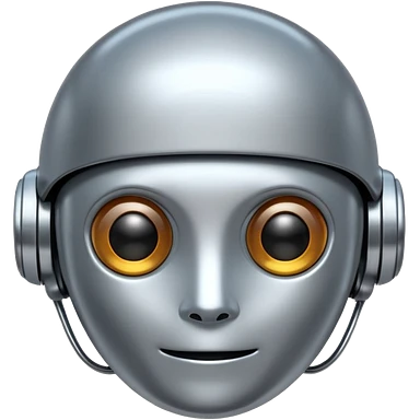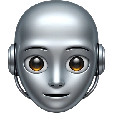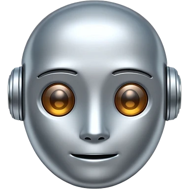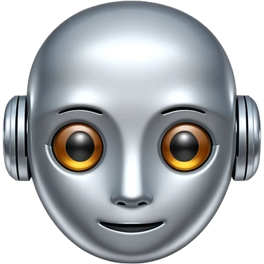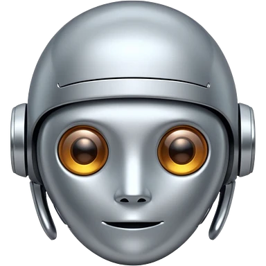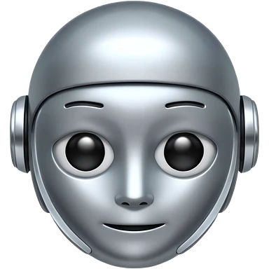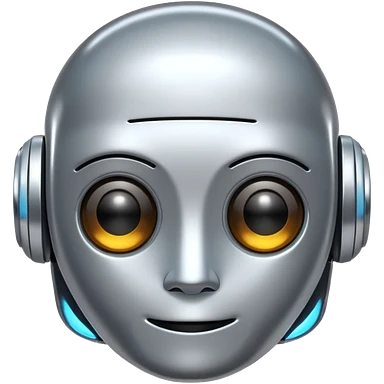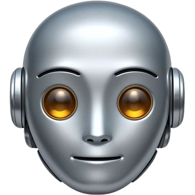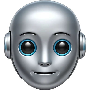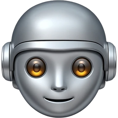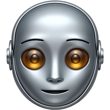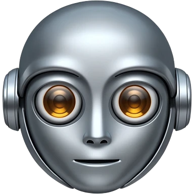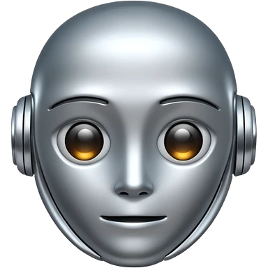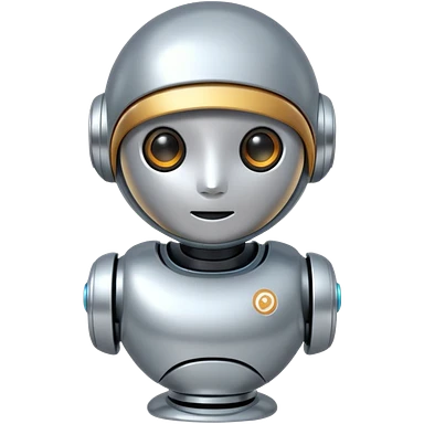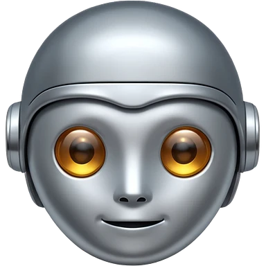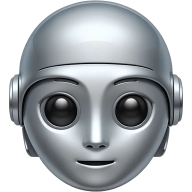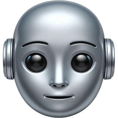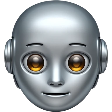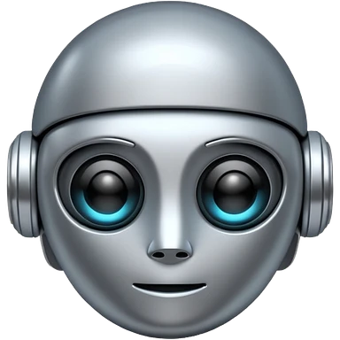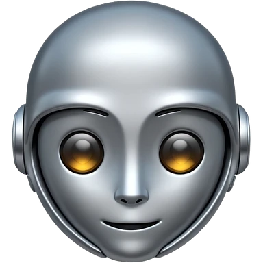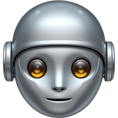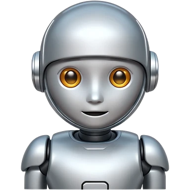 A cute futuristic robot emoji made of silver chrome, rounded friendly body, minimal facial features, glossy metallic surface, soft reflections, iOS emoji style, centered, clean white background emoji | AI Emoji Generator