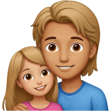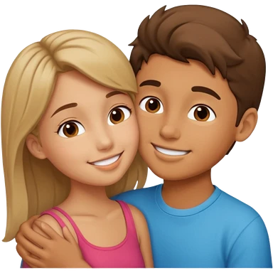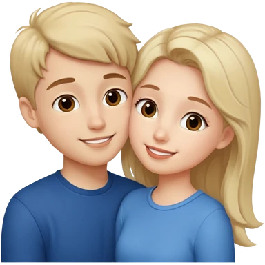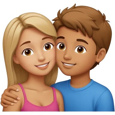 cute girl (long brunette balayage curly/wavy not voluminous hair, brown eyes, hoop earrings, natural pretty clean makeup): kissing on the cheek a cute boy (blondish SUPER STRAIGHT hair and brown eyes and a cute face) emoji