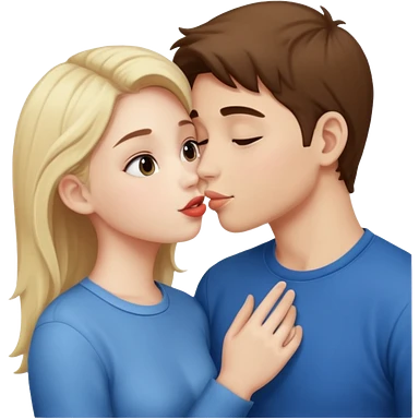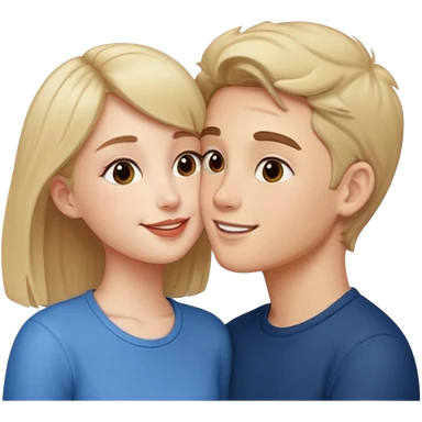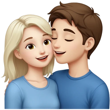 cute girl (long brunette balayage curly/wavy not voluminous hair, brown eyes, hoop earrings, natural pretty clean makeup): kissing on the cheek a cute boy (blondish straight hair and brown eyes and a cute face) emoji