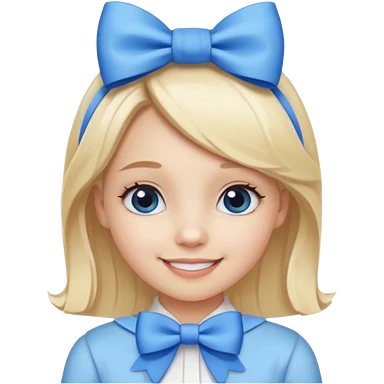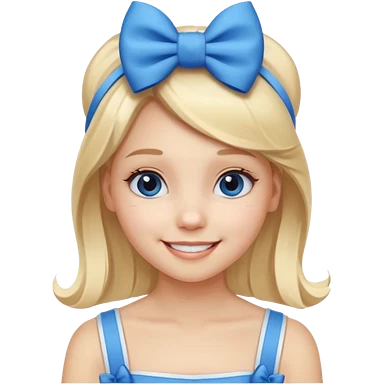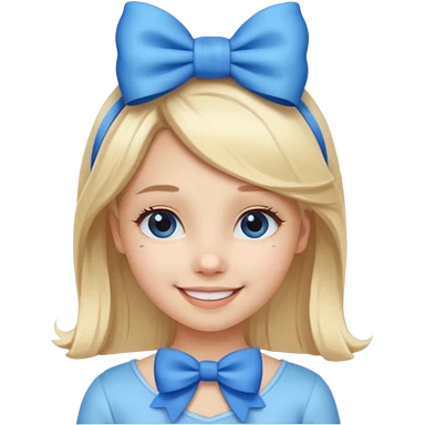 A cute girl with a white skin and a blonde hair with a blue and white bow in her head emoji | AI Emoji Generator