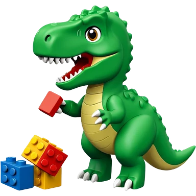 A cute green t-rex building with LEGO bricks emoji | AI Emoji Generator