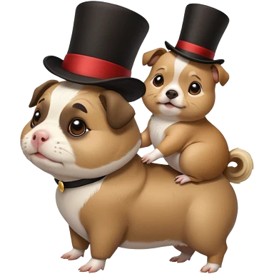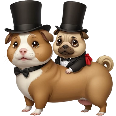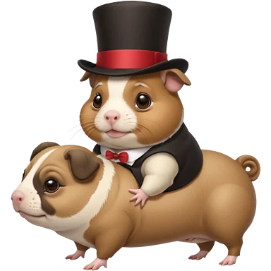 a cute guinea pig wearing a top hat riding on the back of a pug dog emoji | AI Emoji Generator