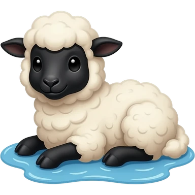 a cute black lamb chilling at the blue big ocean emoji