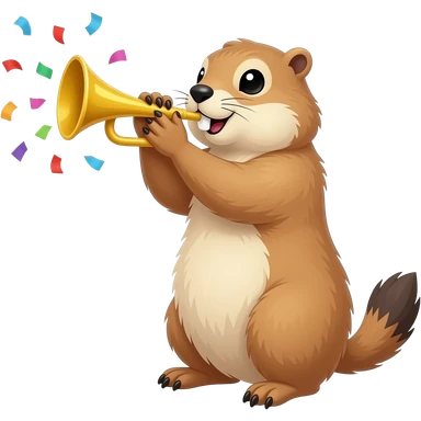 Prairie dog Blowing on party horn with confetti emoji