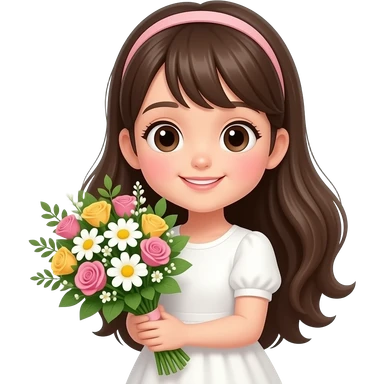 A cute girl holding bouquet emoji