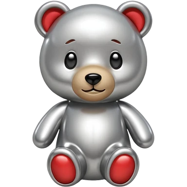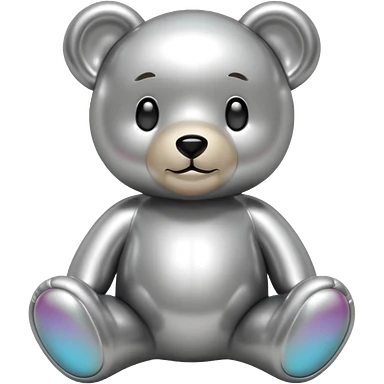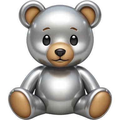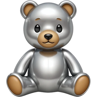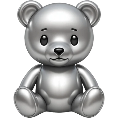 A cute teddy bear emoji made of liquid silver chrome, smooth rounded body, glossy metallic surface, soft reflections, friendly proportions, iOS emoji style, centered, clean white background emoji | AI Emoji Generator