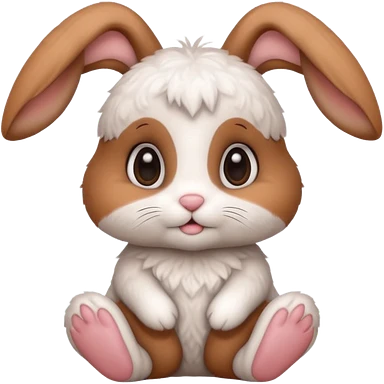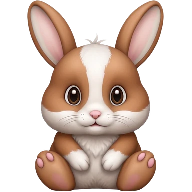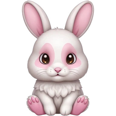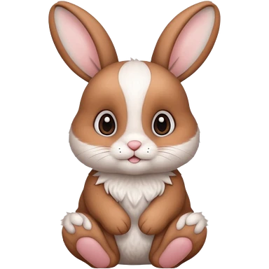 a cozy sitting cute white and brown bunny with big cute eyes emoji
