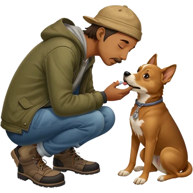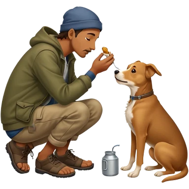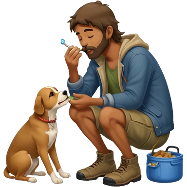 a homeless man licking dogs feet emoji