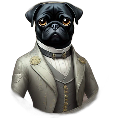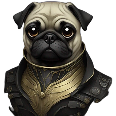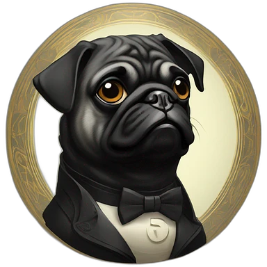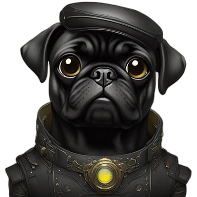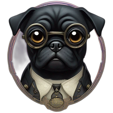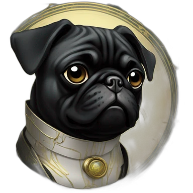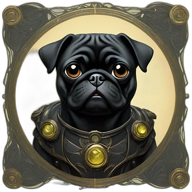 A cyberpunk black pug in Art Nouveau style during 1910 emoji