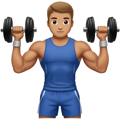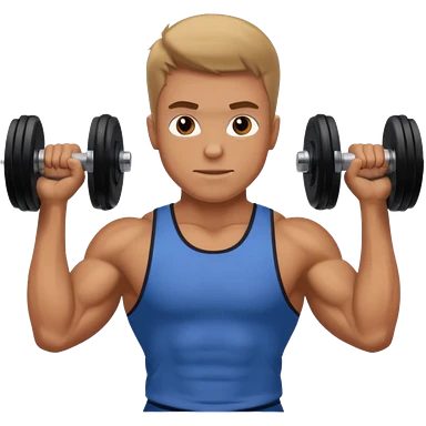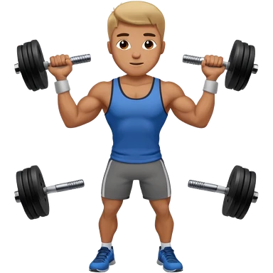 A person lifting weights in a well-equipped gym, focused and determined. The scene highlights muscle definition and strength, with exercise equipment like dumbbells and kettlebells nearby. The background is energetic, with bright lights and motivating colors, showcasing dedication and power. emoji