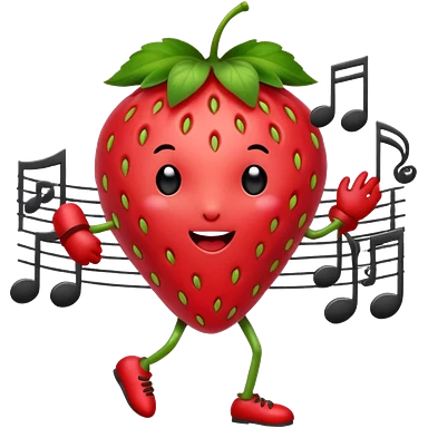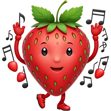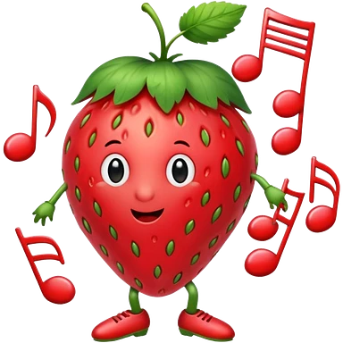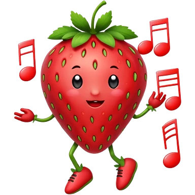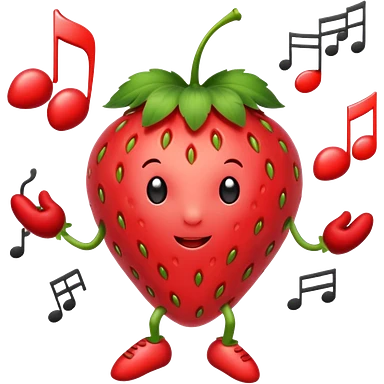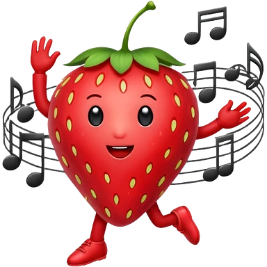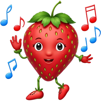 A Dancing strawberry with music notes around emoji | AI Emoji Generator