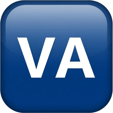 Generate an emoji that is a dark blue square with the letters VA in white emoji