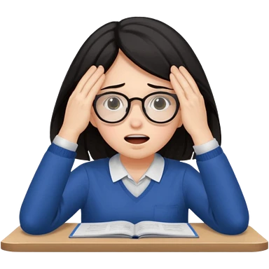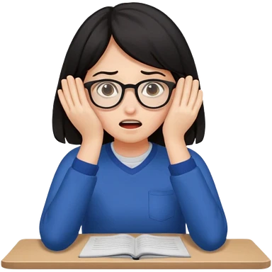 A dark-haired student panics during an exam, covering her face with her hands and not knowing what to do. emoji | AI Emoji Generator