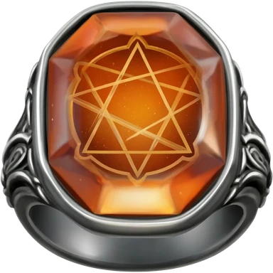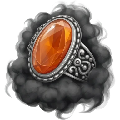 An orange gem ring, with silver designs. Make it dark, mysterious and occult. emoji