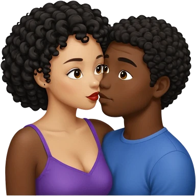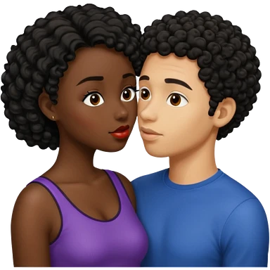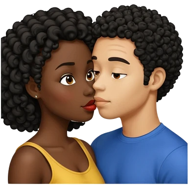 A dark skin woman with a light skin man who has black short curly hair kissing emoji | AI Emoji Generator