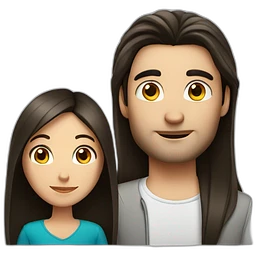 A light skinned girl with brown eyes, long straight light brown hair and glasses with a dark skinned boy with brown eyes and curly hair with no glasses emoji