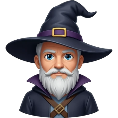 bald wizard with blue eyes, wearing a dark blue cloak emoji